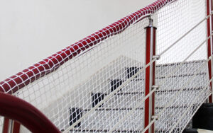 A staircase safety nets works by preventing people from falling or slipping on the stairs. It can also be used as a compound barrier.