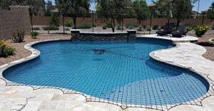Pool safety nets are designed to fit your swimming pool, and can be customized to fit around obstacles such as rocks and waterfalls. It is important to note that there will be no gaps in the pool safety net that could create a hazard.
