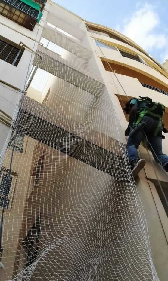A duct area net is used to enclose the void between the two blocks of apartments. This void is often invaded by the birds that pollute the premises.